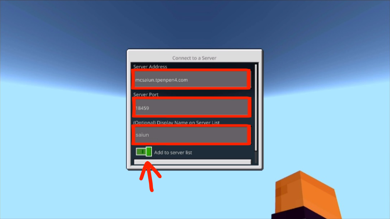 - ※「Add to server list」をONにすると入力した情報が保存できます