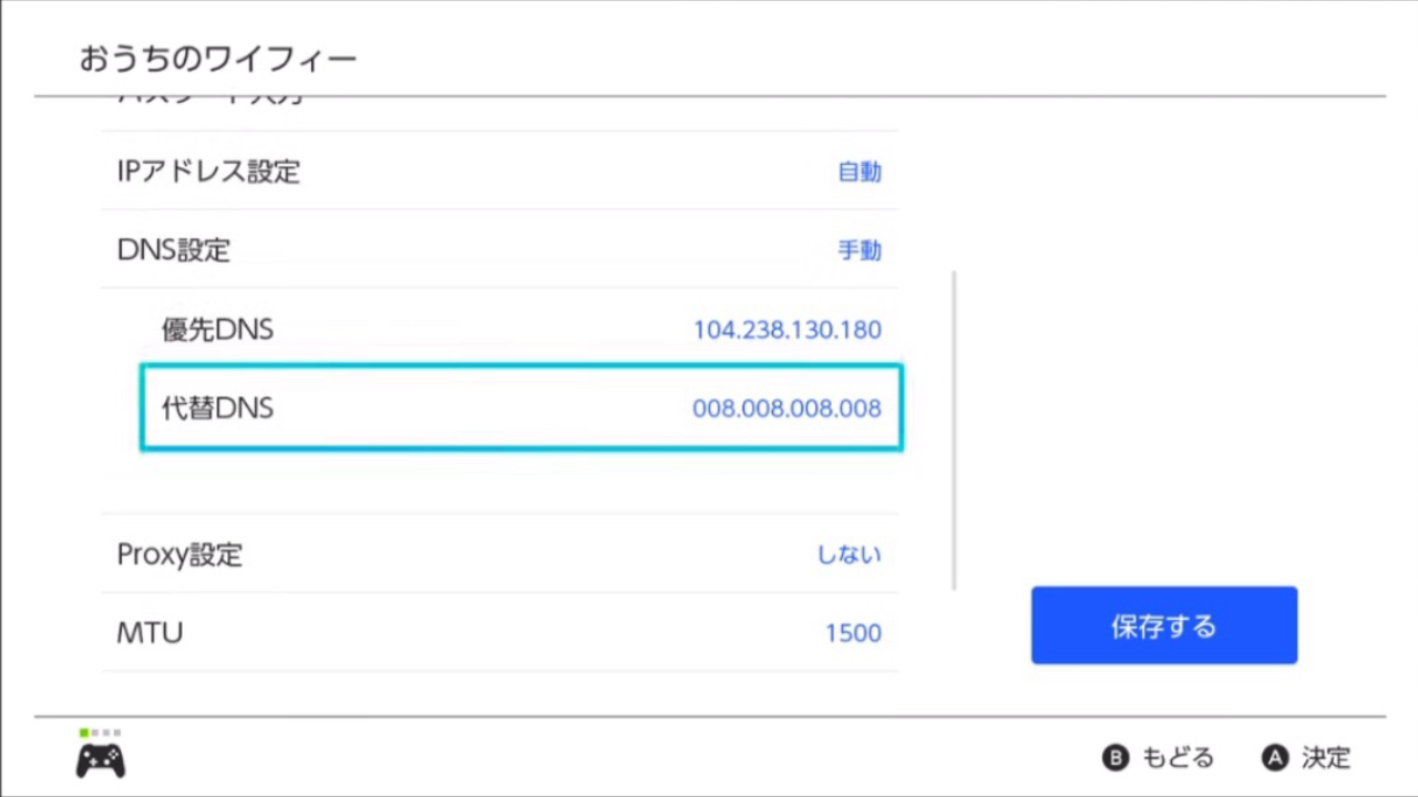 - 代替DNS:008.008.008.008